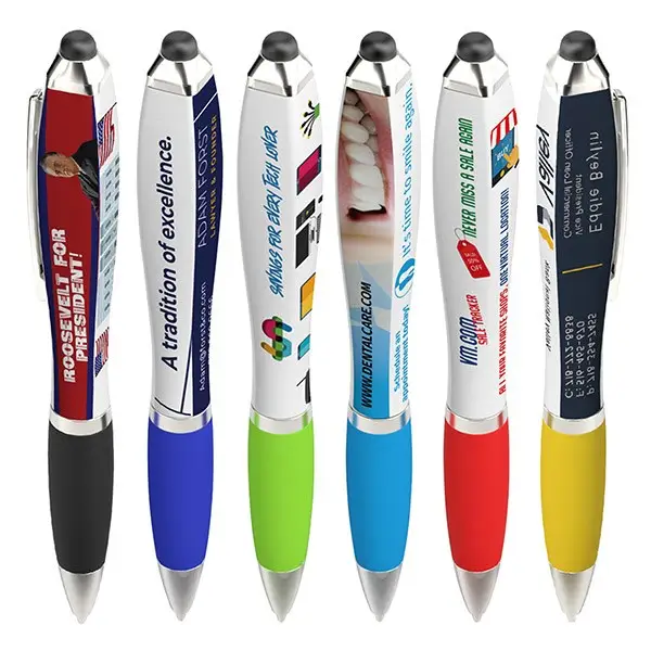 These Performance Pens are incredible! They are full color with unlimited decoration. Some have three-sides, some four. Some have styluses. Available with click action or twist action Besides the unlimited decoration, they have many colors available for the trim and grip.